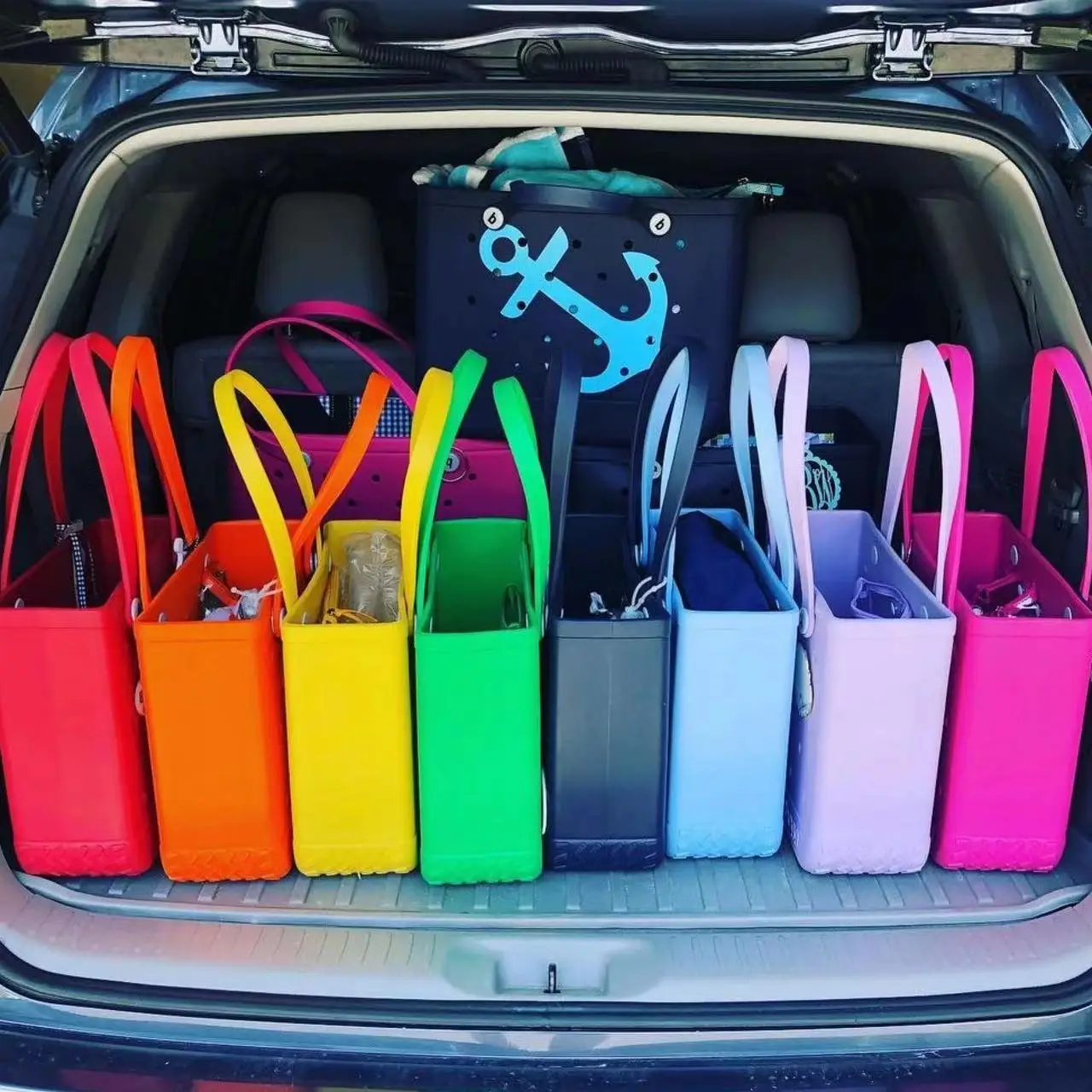 Beach Bag Tote Silicone Basket Waterproof Travel Jelly Handbag Women Picnic Basket Multi-Purpose Croc Handbag Shopping Bag